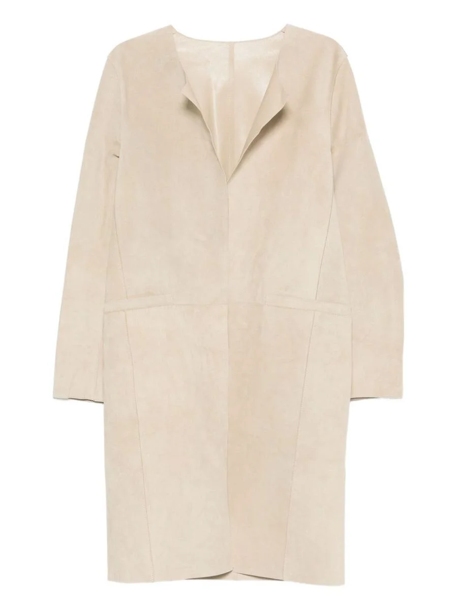 light beige suede long sleeves round neck seam detail front pockets This piece fits true to size. We recommend you get your regular size Model is 1,75m / 5ft 8in wearing size 36 (FR) Gender: Women Material: CALF SUEDE 100% Color: Beige Made in: Imported Product ID: 253WRO0241LE0150271 *Import tax/duty will be calculated at checkout (If applicable)