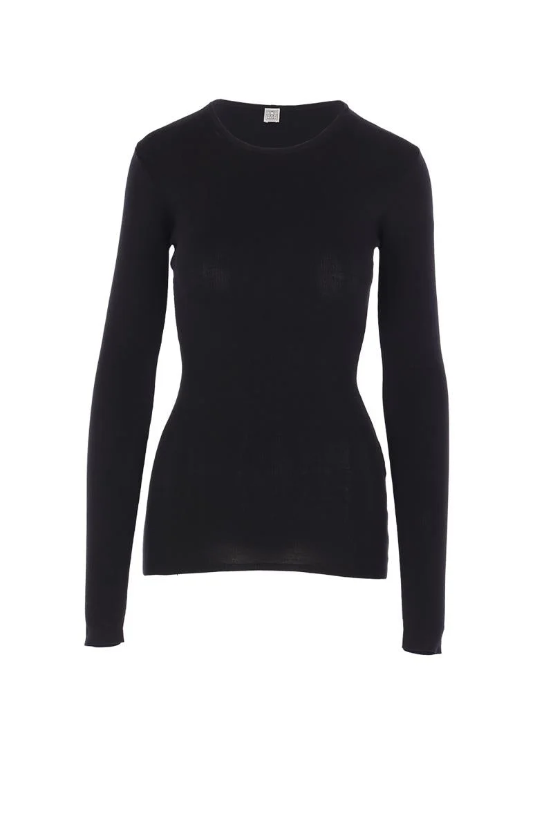 Toteme top crafted from black compact cotton. Featuring a crew neckline, long sleeves, and a straight hem. Gender: Women Material: 100% COTTON ORGANIC Color: Black Made in: Imported Product ID: 252WRT0491YA0172001 *Import tax/duty will be calculated at checkout (If applicable)