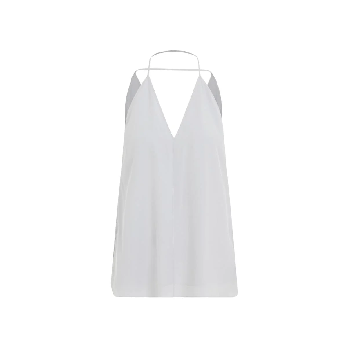 Toteme Double-Halter White Silk Top. Crafted white silk, V-neckline front and back, spaghetti straps, slightly flared, straight hem. Gender: Women Material: 100%SILK Color: WHITE Made in: IMPORTED Product ID: 242WRT1688FB0115_132 *Import tax/duty will be calculated at checkout (If applicable)