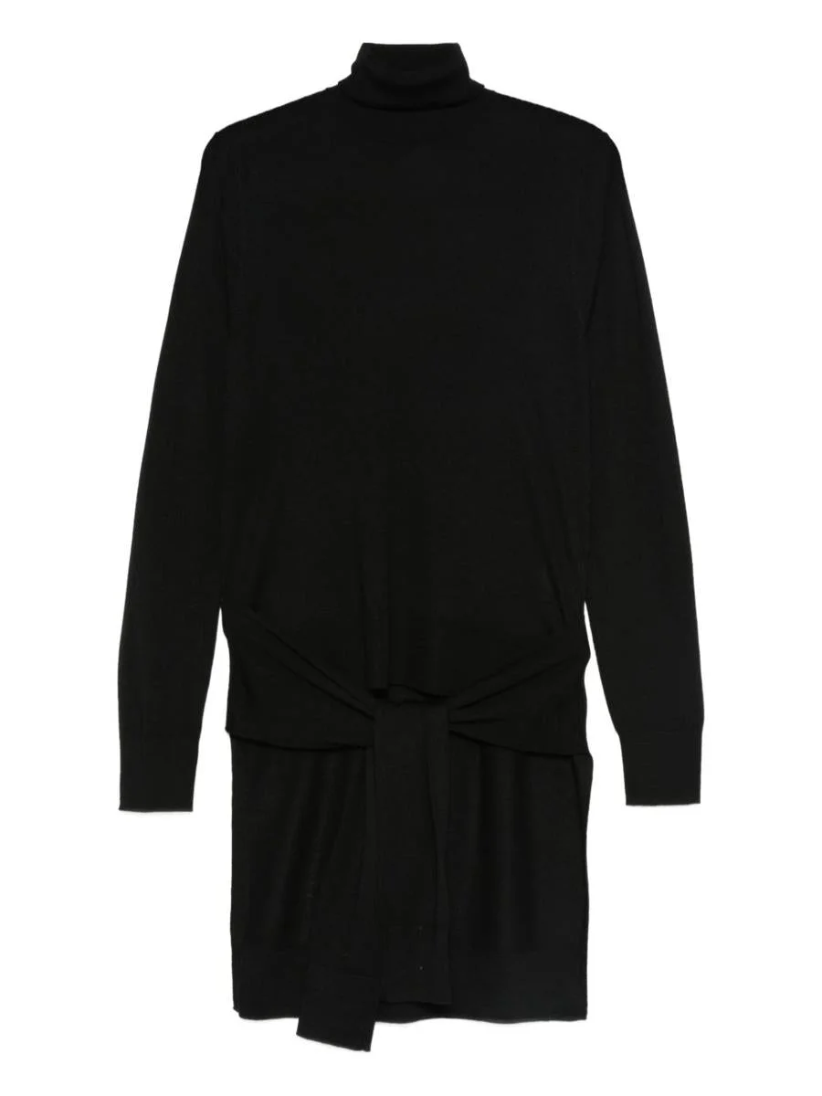 black turtleneck neckline double sleeve detail tie-front fastening self-tie belt long sleeves Gender: Women Material: 75% WOOL RWS, 25% SILK Color: Black Made in: Imported Product ID: 254WRT0615YA0087001 *Import tax/duty will be calculated at checkout (If applicable)