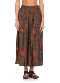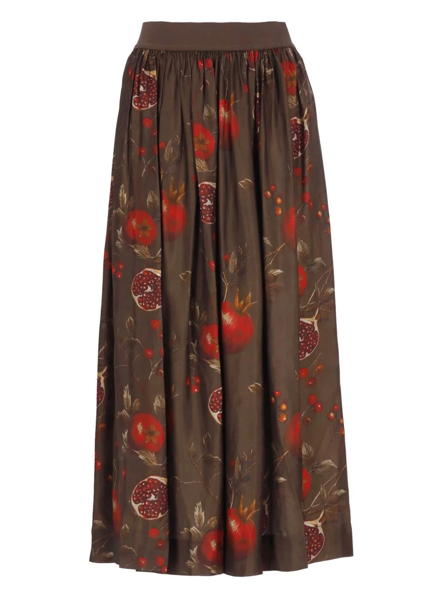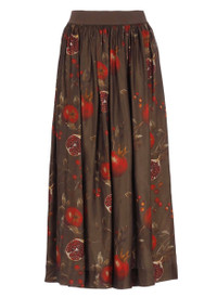 pomegranate-print pleated maxi skirt