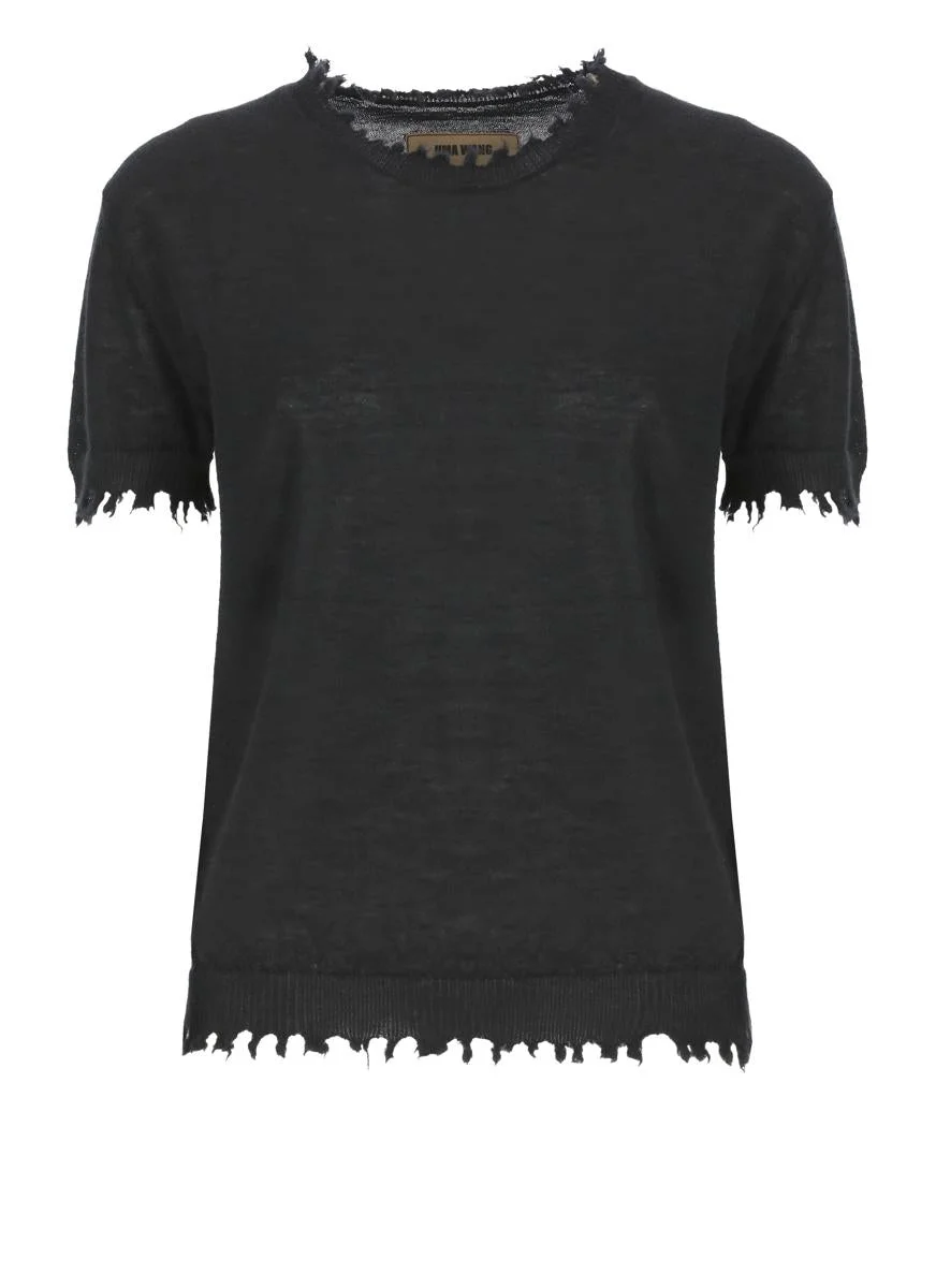 - Black Uma Wang cashmere sweater for woman - Round neck - Short sleeves - Elastic ribbed trims with ripped details Model's height is 179 cm and she wears a size S Gender: Women Material: 100% CASHMERE Color: Black Made in: IT Product ID: UK7152UW900BLACK *Import tax/duty will be calculated at checkout (If applicable)