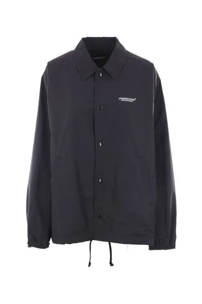 Undercover's jacket crafted in black nylon with contrasting logo print at chest and U print at back. It features a pointed collar, snap-button fastening, side pockets, long sleeves with elasticated cuffs and drawstring at hem. Mesh-lined interior. Gender: Women Material: 100% NYLONLINING: 100% POLYESTER Color: Black Made in: JP Product ID: UB0D4201BLACK *Import tax/duty will be calculated at checkout (If applicable)