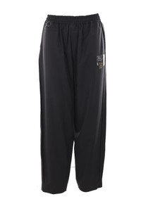 Undercover's joggers crafted in black wool blend with inside-out stitching and logo patches on front. Featuring elasticated waistband with drawstring, multiple pockets and metal ring at waist. Gender: Women Material: 50% WOOL 50% POLYESTER Color: Black Made in: JP Product ID: UC1D15013BLACK *Import tax/duty will be calculated at checkout (If applicable)