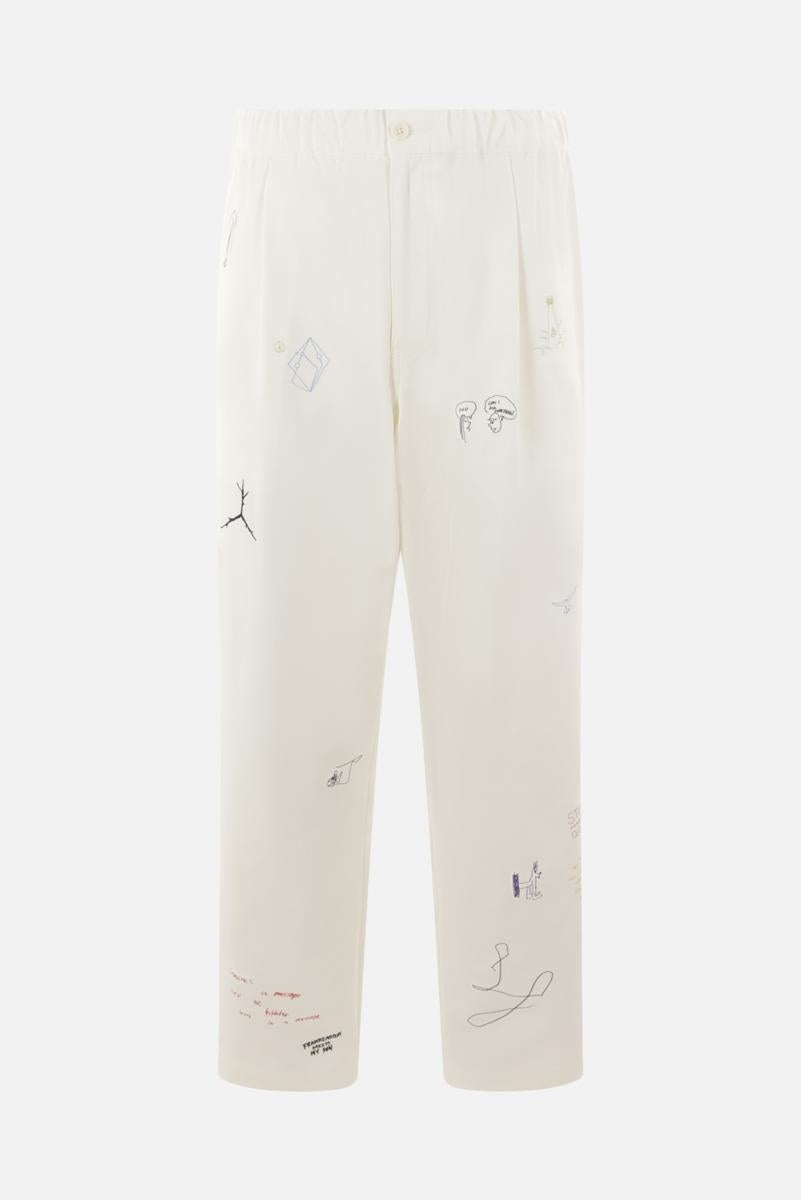 Undercover straight-leg pants made of off-white cotton gabardine with multicolored prints on both sides. They feature an elasticized waistband, button and zip closure and pockets on both sides. Gender: Men Material: 100% COTTON Color: Beige Made in: Imported Product ID: UC2D45052OFFWHITE *Import tax/duty will be calculated at checkout (If applicable)