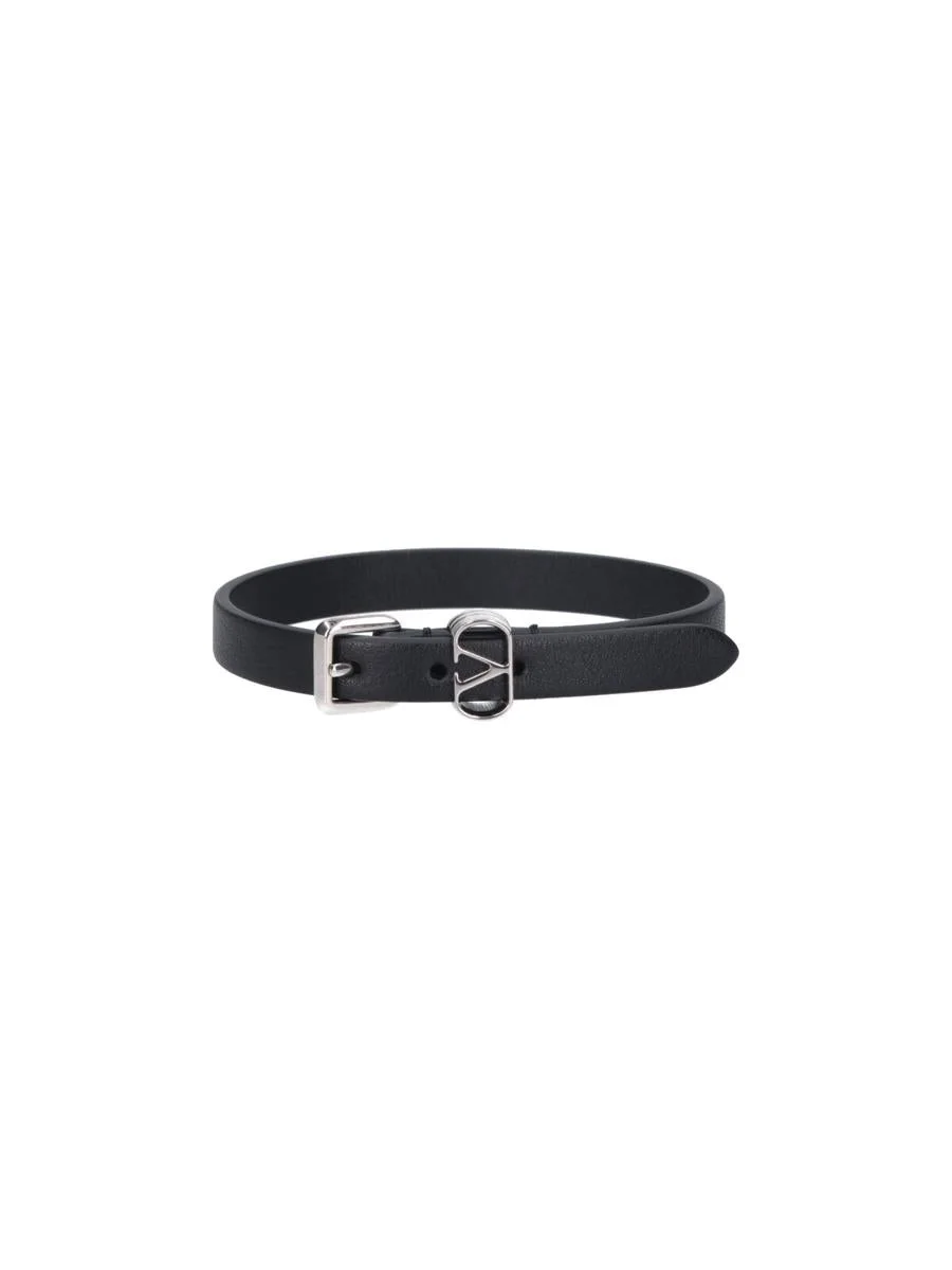 Valentino Garavani Vlogo Plaque Leather Bracelet