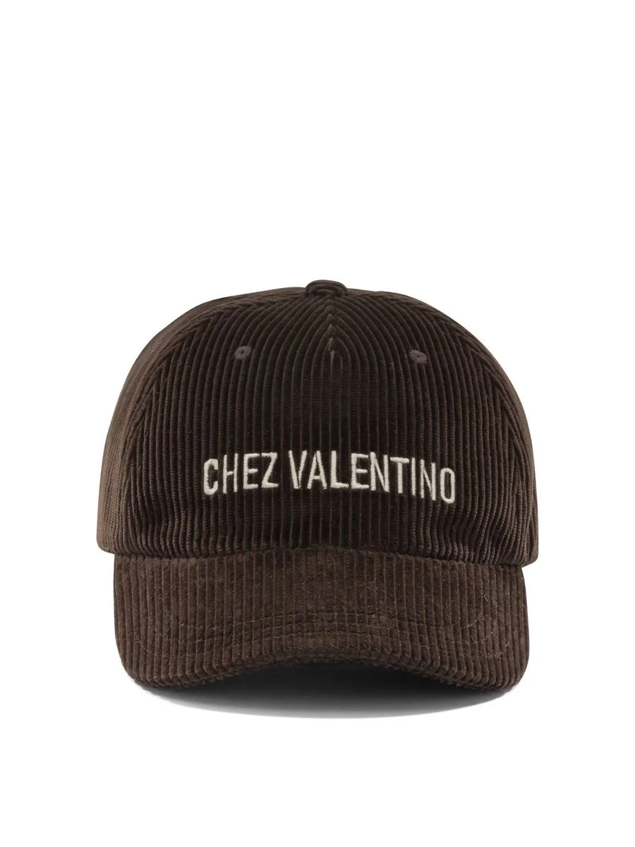 CHEZ VALENTINO VELVET BASEBALL CAP WITH EMBROIDERY