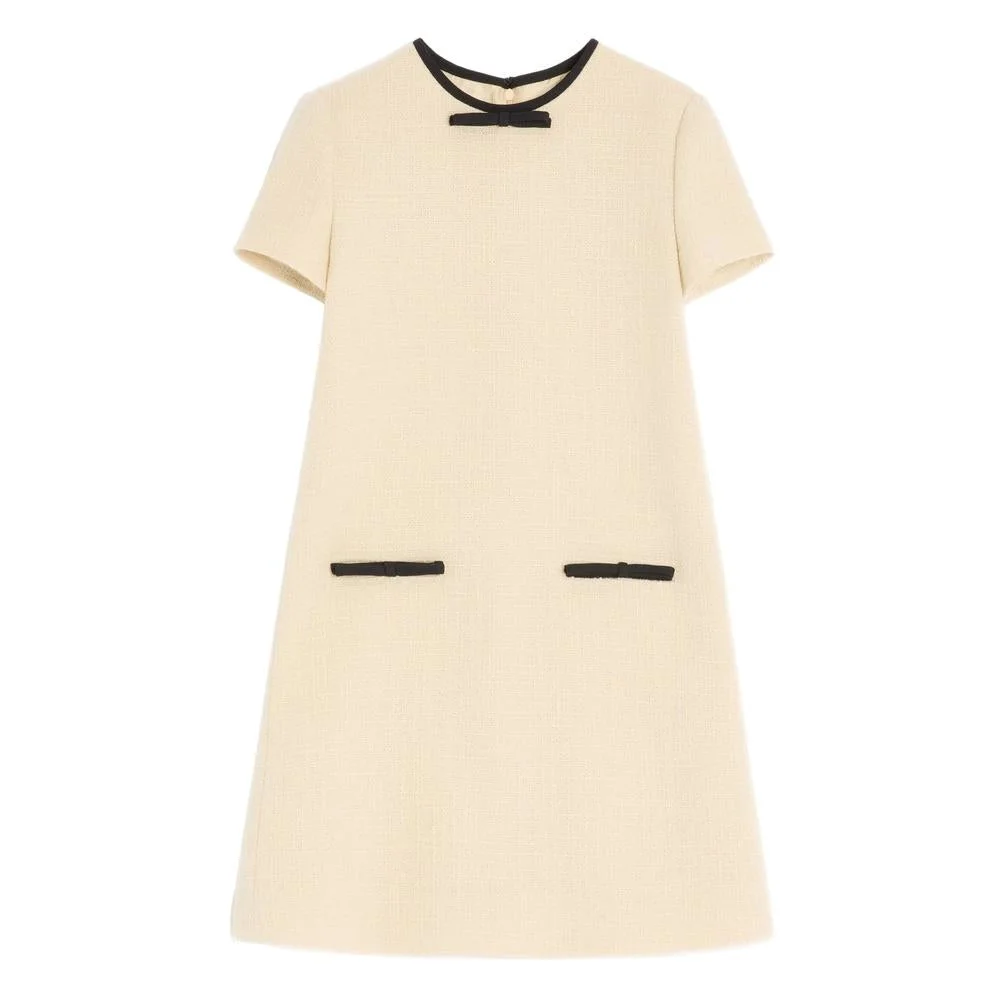 Ivory wool tweed short sleeves bow neckline black contrast trim front pockets Gender: Women Material: LINING COMPOSITION SILK: 26.0%, OUTER COMPOSITION POLYAMIDE: 3.0%, OUTER COMPOSITION WOOL: 97.0%, LINING COMPOSITION BIO ACETATE: 74.0% Color: Beige Made in: Italy Product ID: 7B0VAH5090Y DNG *Import tax/duty will be calculated at checkout (If applicable)