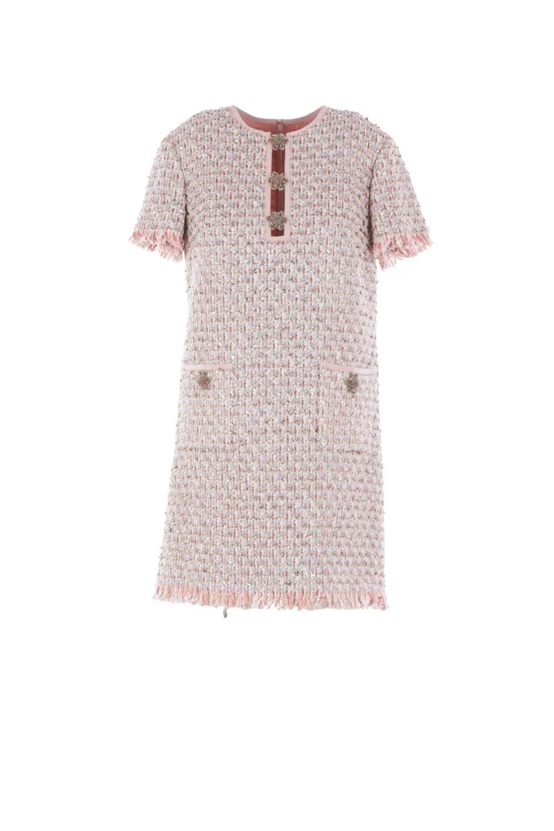 EMBROIDERED RIBBON TWEED SHORT DRESS