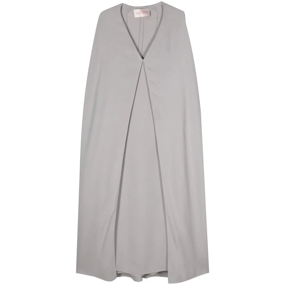 Valentino ready to wear grey silk cape design v-neck inverted pleat batwing sleeves asymmetric hem matching underdress concealed rear hook and zip fastening Gender: Women Material: OUTER COMPOSITION SILK: 100.0%, LINING COMPOSITION VISCOSE: 91.0%, LINING COMPOSITION ELASTANE: 9.0% Color: GREY Made in: IT Product ID: 4B0VA8J11MM P02 *Import tax/duty will be calculated at checkout (If applicable)