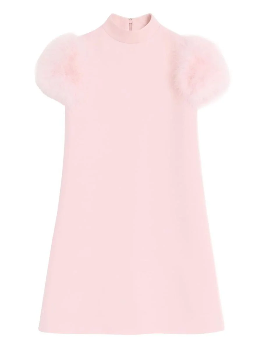 SHORT CREPE COUTURE DRESS WITH FEATHERS