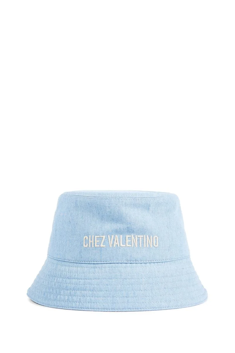 CHEZ VALENTINO DENIM BUCKET HAT WITH EMBROIDERY