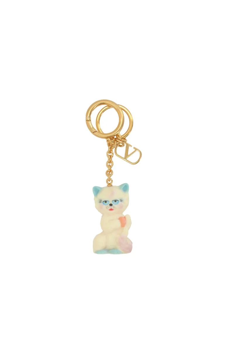 Valentino Garavani keychain crafted in gold-tone metal, featuring a Le Chat de la Maison pendant and VLogo Signature charm. Designed with a lobster clasp and spiral key ring. Gender: Men Material: 100%PLASTIC MATERIALS Color: ANTIQUE BRASS+MULTICOLOR Made in: Italy Product ID: 7Y2P0AR1VQY190 *Import tax/duty will be calculated at checkout (If applicable)