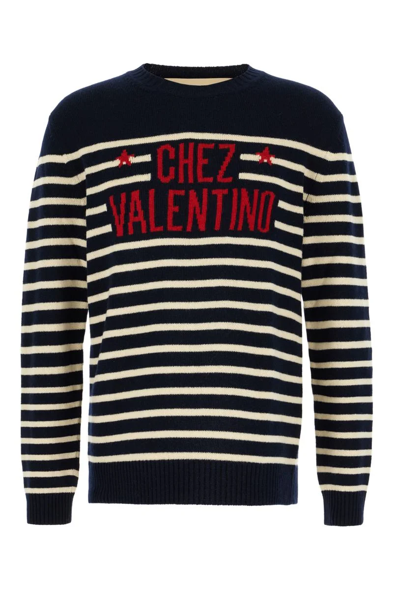 Logo-Intarsia Striped Virgin Wool Sweater Navy