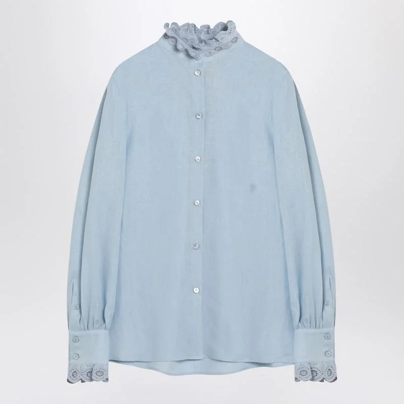 Embroidered linen shirt Light blue
