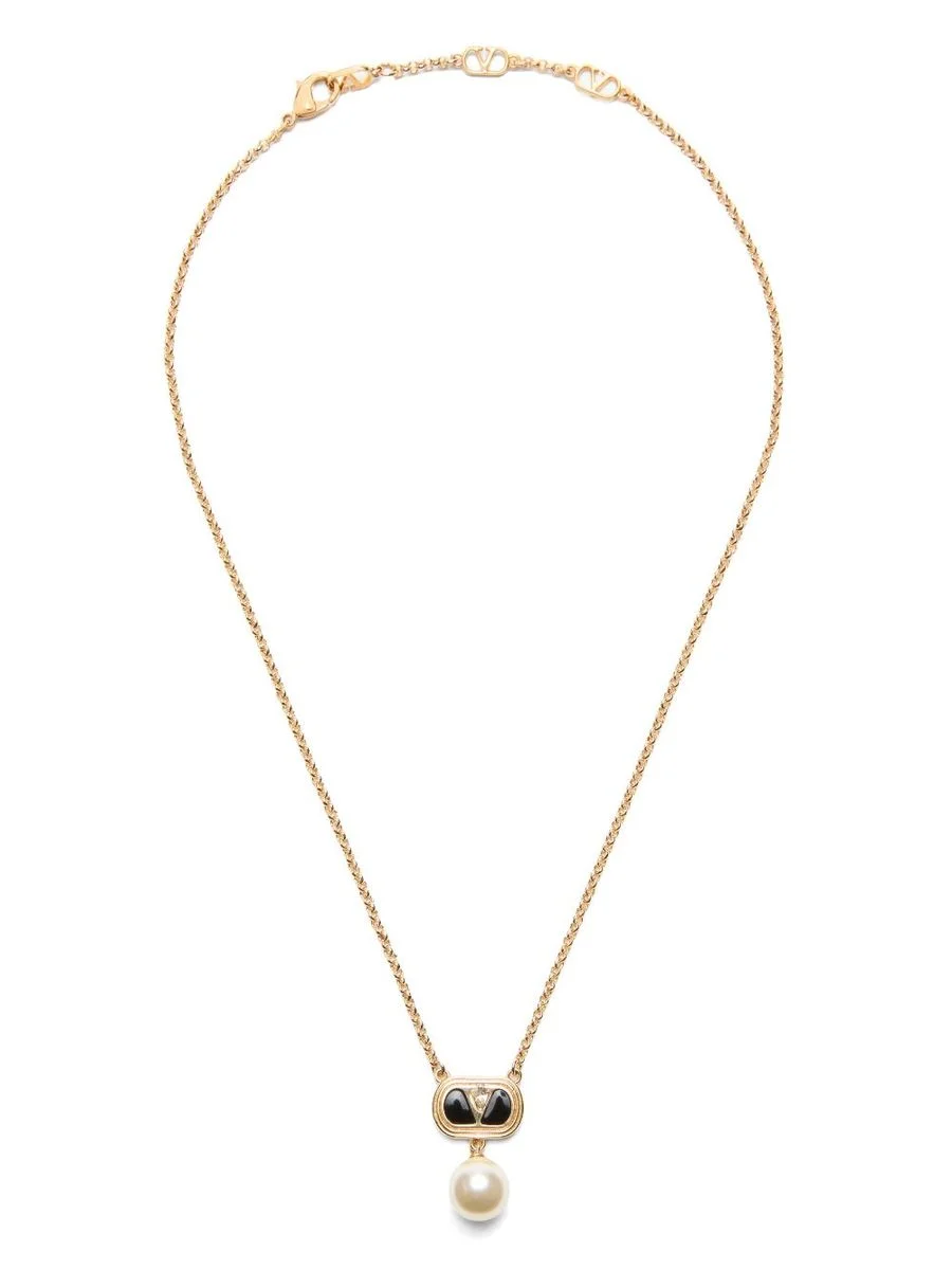 VALENTINO GARAVANI'S PEARL PENDANT NECKLACE FEATURES A CLASSIC CLASP. THE PENDANT IS ATTACHED TO A PLAQUE, ON WHICH THE BRAND'S ICONIC VLOGO IS ENGRAVED. A REFINED AND SOPHISTICATED PIECE OF JEWELRY, COMBINING THE BEAUTY OF THE PEARL WITH VALENTINO'S DISTINCTIVE SYMBOL, PERFECT FOR ADDING A TOUCH OF CLASS TO ANY LOOK. UNI Gender: Men Material: BRASS Color: GOLD Made in: IT Product ID: 6Y2J0S36LNW_RFR *Import tax/duty will be calculated at checkout (If applicable)
