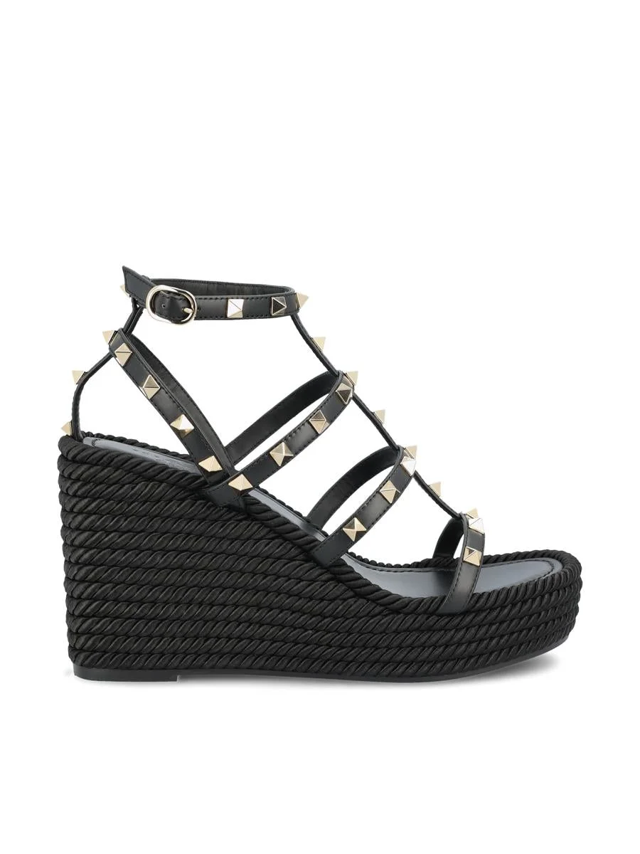 ROCKSTUD ANKLE STRAP WEDGE SANDAL IN CALFSKIN LEATHER 95 MM