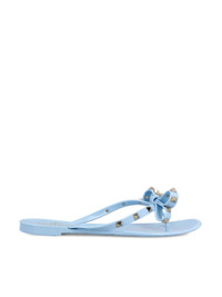 Valentino Garavani Rockstud slippers reinterpret the concept of summer elegance with a bold and refined twist. Made entirely of rubber, they feature an essential design with straps decorated with the iconic Rockstud studs. A practical and glamorous model, perfect for completing beach or city looks with Valentino's unmistakable style. - Upper: 100% rubber - Color: light blue - Lace patterned sole - Platinum finish studded bow detail - Made in Italy - Box included - Item code: 7W2S0552PVS68M Gender: Women Color: MULTICOLOR Made in: Imported Product ID: 7W2S0552PVS68M_AI25 *Import tax/duty will be calculated at checkout (If applicable)