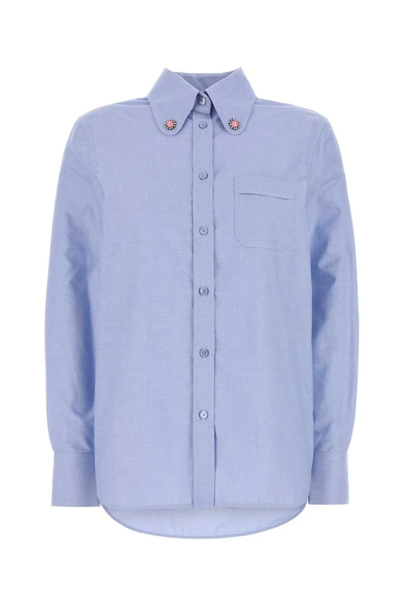 Powder blue oxford shirt Gender: Women Material: EXTERIOR: 100% COTTON Color: BLUE Made in: Italy Product ID: 6B3AB78193R QNX *Import tax/duty will be calculated at checkout (If applicable)