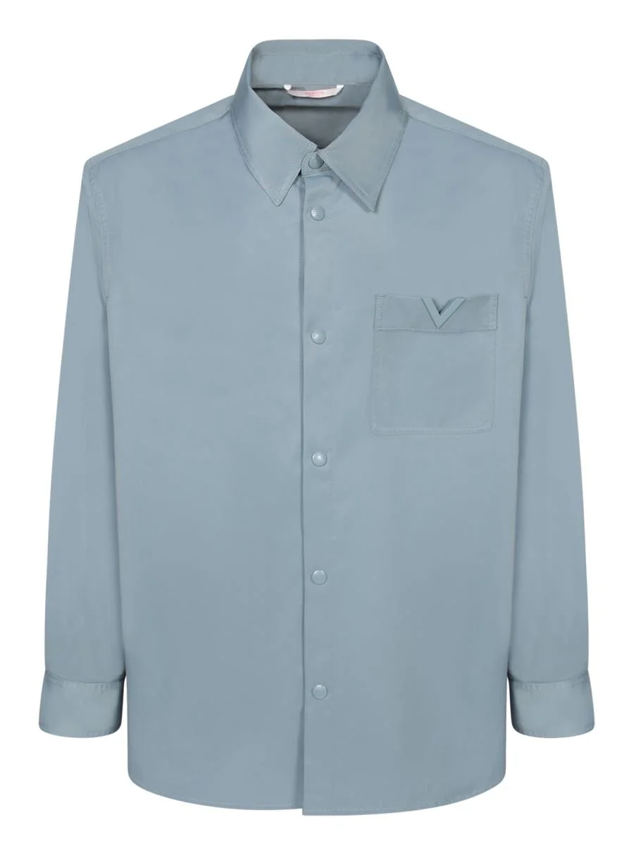 Long sleeve shirt in smooth fabric. Classic collar and front button closure. Chest pocket with 'V' detail.. This elegant celestial blue shirt from Valentino showcases minimalist finesse, enriched with the iconic 'V' detail on the pocket, ideal for a sophisticated office look or semi-formal occasions Gender: Men Material: 64% POLYESTER 36% ELASTANE Color: BLUE Made in: Imported Product ID: 5V3CIO05 CKV S02 *Import tax/duty will be calculated at checkout (If applicable)