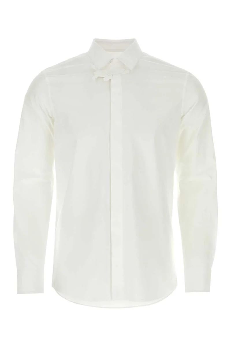 Valentino long-sleeved shirt made of cotton poplin with tone-on-tone embroidered flower applied under the pointed collar. Concealed button closure, square cuffs with single button and back yoke. Regular fit. The model is 187 cm tall and wears size IT 40. Gender: Men Material: 100% COTTON Color: WHITE Made in: IT Product ID: 4V0AB76FA11 0BO *Import tax/duty will be calculated at checkout (If applicable)