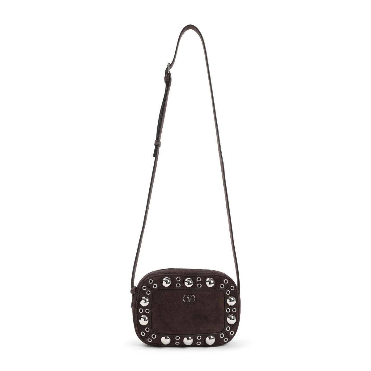 Valentino Garavani Testa di Moro Brown Cow Suede Leather Nellcote Cross Body Bag. Pure testa di moro brown cow suede leather, top adjustable shoulder strap, top zipped fastening, front silver-tone metallic signature V-logo detail, silver-tone studded and pearl details on the front and on the back, one main compartment, tonal stitching. Measures: W:21,5cm H:15cm D:5cm Gender: Men Material: 100%COWHIDE Color: BROWN Made in: Italy Product ID: 7Y2B0R74JET_0 *Import tax/duty will be calculated at checkout (If applicable)