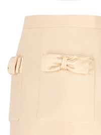 Valentino signature skirt with two bows applied to the front, an iconic element that recalls the maison's feminine and graphic aesthetic. The short and structured design stands out for its essential line and tailored construction, ideal for creating decisive looks with decorative details with a strong visual impact. - Material: 65% virgin wool, 35% silk - Color: beige - Side zipper closure - Made in Italy - Item code: 7B3RADP61CFET5 Gender: Women Material: T 65%VIRGIN WOOL 35%SILK Color: MULTICOLOR Made in: Italy Product ID: 7B3RADP61CFET5_AI25 *Import tax/duty will be calculated at checkout (If applicable)
