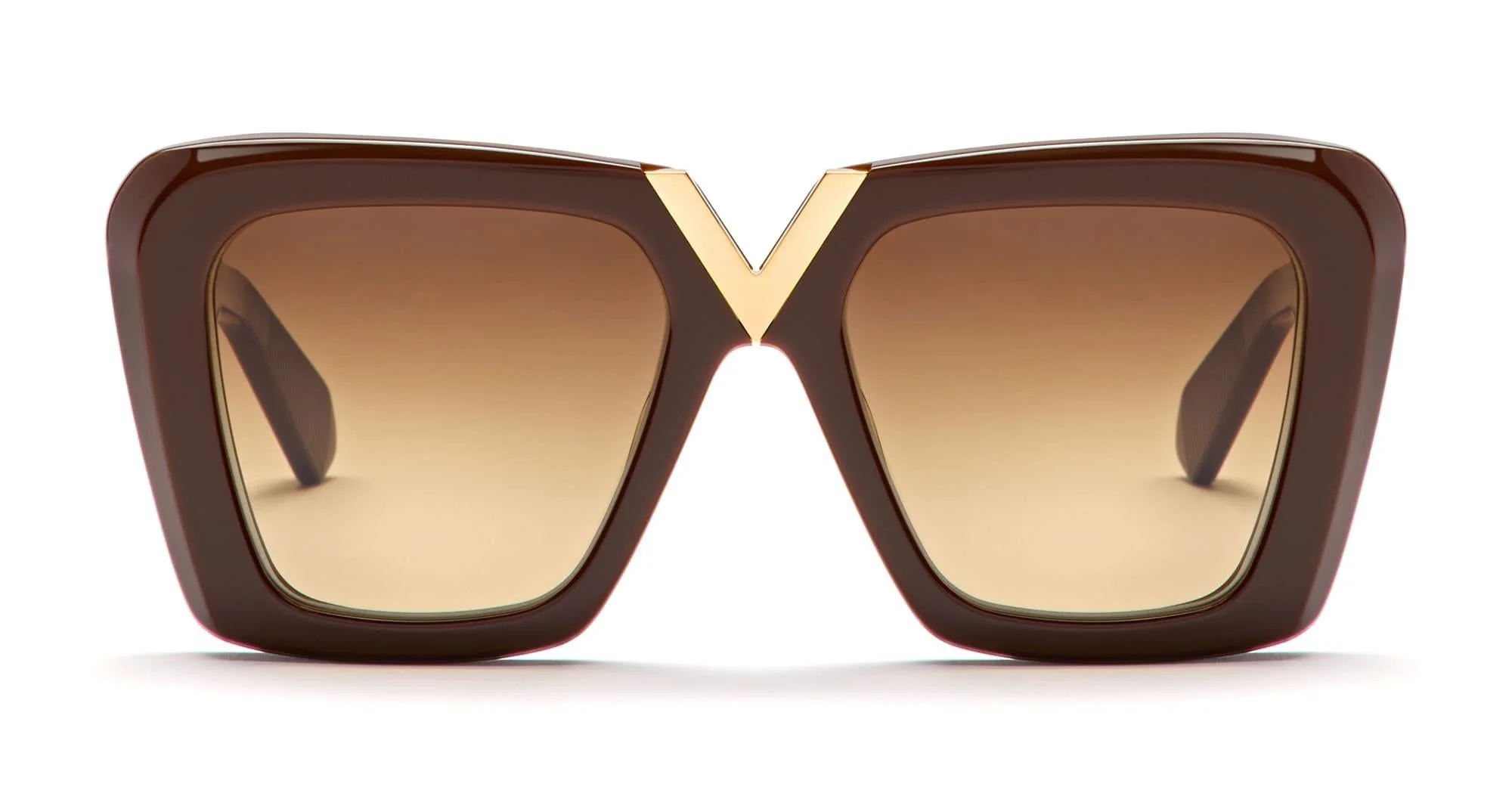 V-GOLD-II - FONDANT BROWN / GOLD Valentino V-GOLD-II - FONDANT BROWN / GOLD (VLS-161B-53) are feminine sunglasses with a oversize '80s-inspired butterfly shape, hommage to the roman La Dolce Vita. They feature brown Japanese acetate frame, gold iconic titanium V-Gold bridge insert, acetate temples with Valentino logo with custom-extruded tri-dimensional rock-stud temple tips, and gradient brown lens with 100% UV protection. Made in Japan - Color : brown - Material : acetate, titanium - Lens : gradient brown - Shape : butterfly - Size : eye 53mm / bridge 18mm / temple 145mm Gender: Women Material: ACETATE, TITANIUM Color: BROWN Made in: JP Product ID: VLS-161B-53 *Import tax/duty will be calculated at checkout (If applicable) WARNING CALIFORNIA PROPOSITION 65 This product can expose you to chemicals including Nickel (Metallic), which is known to the State of California to cause cancer. For more information go to https://p65warnings.ca.gov California Health & Safety Code Section 25249.6 *Shipping eyewear products to US only For US customers, eyewear products are categorized as Class 1 medical devices by the 21 Code of Federal Regulations (CFR) - Food and Drug Administration (FDA). Baltini ships eyewear orders on a Delivery Duties Paid (DDP) basis. This means that all applicable duties are included in the final price calculated at the checkout and there are no additional costs due upon delivery.