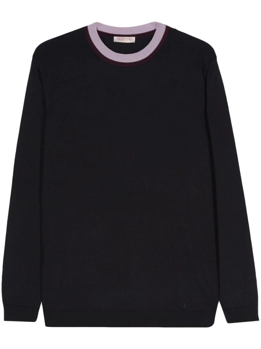 navy blue/lilac purple/dark purple cotton ribbed knit stripe detailing to the neck VLogo Signature embroidery to the front crew neck long sleeves straight hem unlined Gender: Men Material: COTTON 100% VISCOSE 100% Color: NAVY/RUBIN/ASTER Made in: IT Product ID: 4V3KC29EA00 YD8 *Import tax/duty will be calculated at checkout (If applicable)