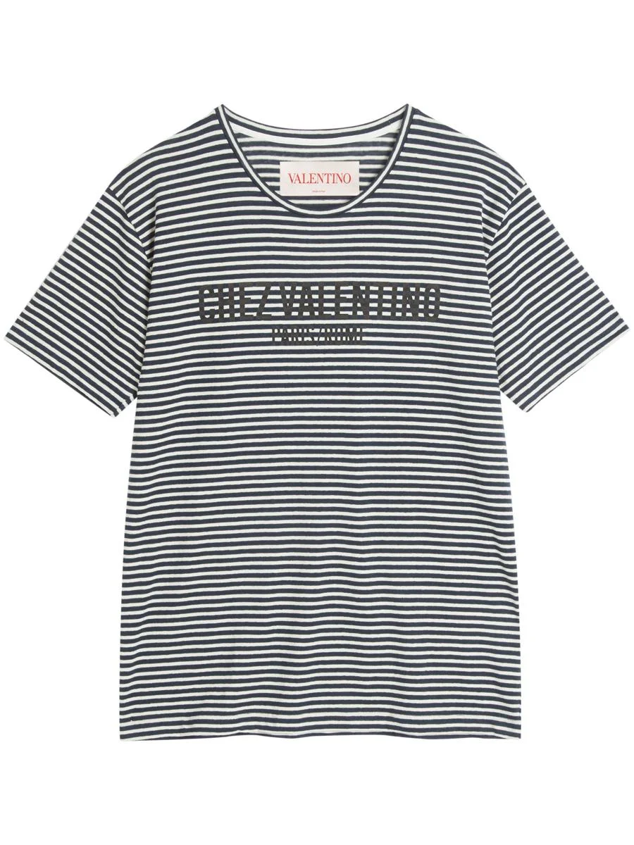 STRIPED COTTON T-SHIRT WITH CHEZ VALENTINO PRINT
