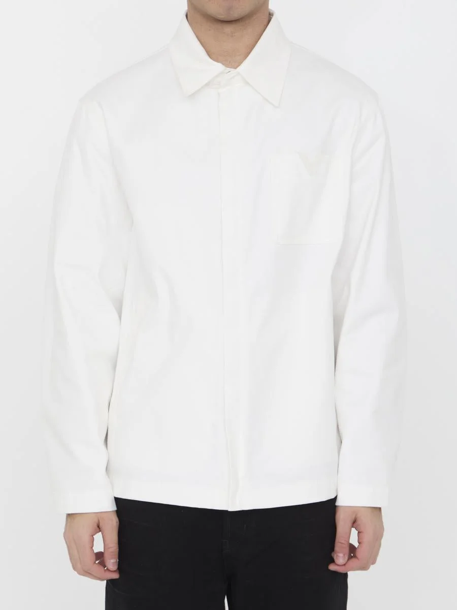 Valentino jacket in white stretch cotton canvas. It features snap-button on collar, front zip closure, two side welt pockets, one patch pocket on chest with rubberized V Detail and snap-button cuffs. Regular fit. The model is 189cm tall and wears size IT 50. Size nationality: IT Gender: Men Material: 98% COTTON, 2% ELASTANE Color: WHITE Made in: IT Product ID: 34763941 4V0CJJ10 9UA A03 *Import tax/duty will be calculated at checkout (If applicable)