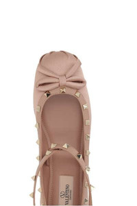 Valentino Garavani's ballerinas crafted in nude satin with tone-on-tone nappa trims adorned with signature platinum-tone metal studs. Featuring adjustable ankle-strap, a round-toe silhouette, decorative bow, leather lining and leather sole. Gender: Women Material: 37%VISCOSE 32%COTTON 31%POLYESTER Color: CINNAMON ROSES Made in: IT Product ID: 5W2S0HB6SWHGF9 *Import tax/duty will be calculated at checkout (If applicable)