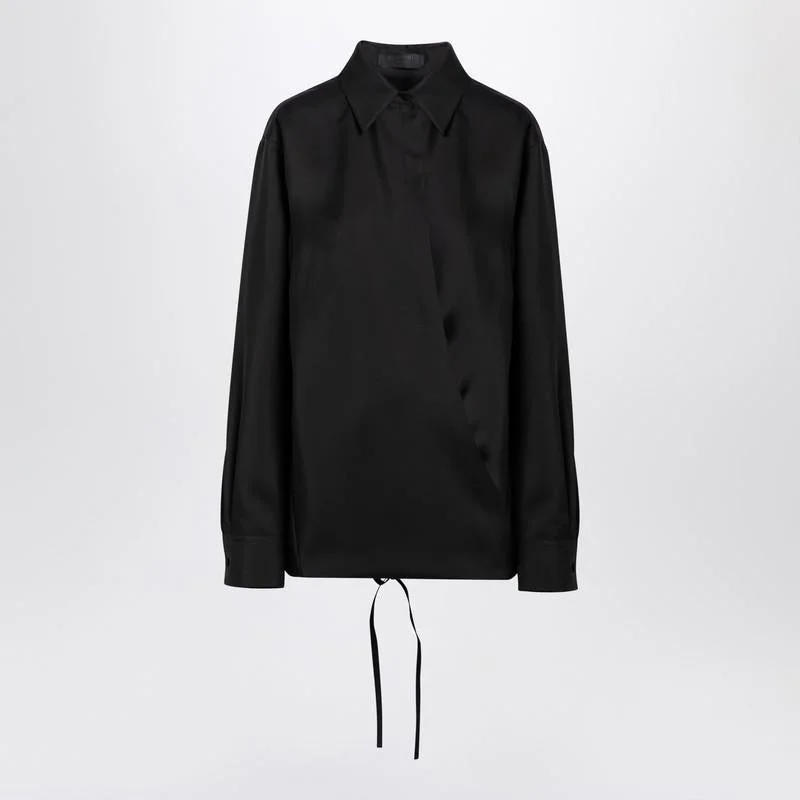 Black wool, mohair and silk shirt by Valentino featuring a classic collar, long sleeves with buttoned cuffs, drawstring at the bottom of the garment and cross-over placket at the front. Gender: Women Material: 43% Wool - 35% Mohair - 22% Silk Color: Black Made in: IT Product ID: 5B0AB6T58Y1/P_VALE-0NO *Import tax/duty will be calculated at checkout (If applicable)