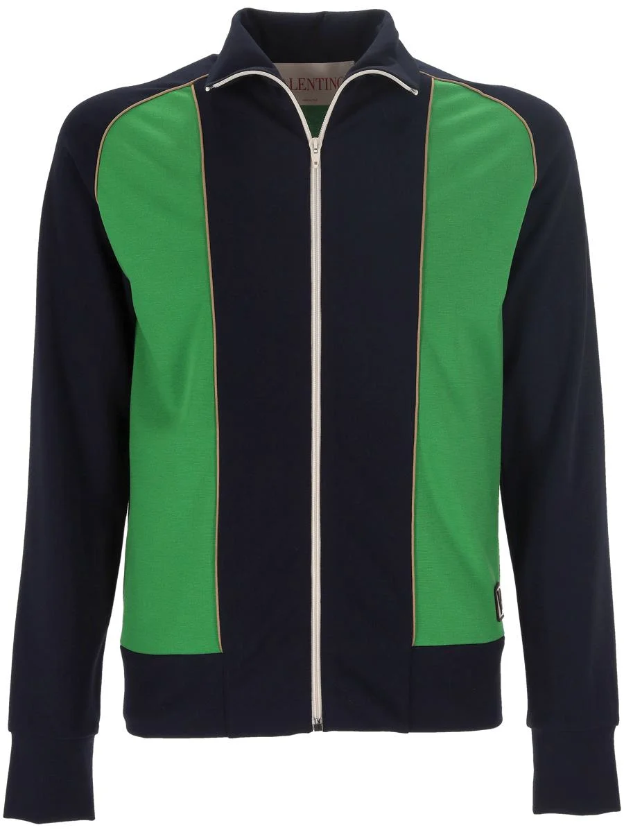 This Valentino Ready To Wear piece features a vibrant grass green color, a front zip closure, two side slit pockets, and ribbed cuffs and hem. Gender: Men Material: 0 67%VISCOSE 28%POLYAMIDE 05%ELASTANE Color: INDACO/LAUREL Made in: IT Product ID: 6V3MF28TAQERGP *Import tax/duty will be calculated at checkout (If applicable)