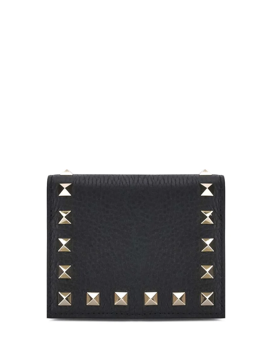 THE ROCKSTUD WALLET BY VALENTINO GARAVANI IS AN ELEGANT ACCESSORY WITH A STRONG CHARACTER, IDEAL FOR THOSE SEEKING STYLE AND FUNCTIONALITY IN A COMPACT FORMAT. MADE OF FINE GRAINED LEATHER, IT STANDS OUT FOR ITS UNMISTAKABLE PROFILE DECORATED WITH THE BRAND'S ICONIC ROCKSTUD STUDS. THE BIFOLD MODEL FEATURES SIX CARD SLOTS, A BANKNOTE COMPARTMENT AND A PRACTICAL ZIPPERED COIN COMPARTMENT, OFFERING PERFECT SPACE ORGANIZATION. THE INTERIOR SNAP-BUTTON CLOSURE ENSURES SECURITY AND PRACTICALITY. UNI Height: 10.5 cm, Length: 8.3 cm, Depth: 2.5 cm Gender: Women Material: CALF LEATHER BOS TAURUS Color: Black Made in: Italy Product ID: 7W2P0AR5VSH_0NO *Import tax/duty will be calculated at checkout (If applicable)