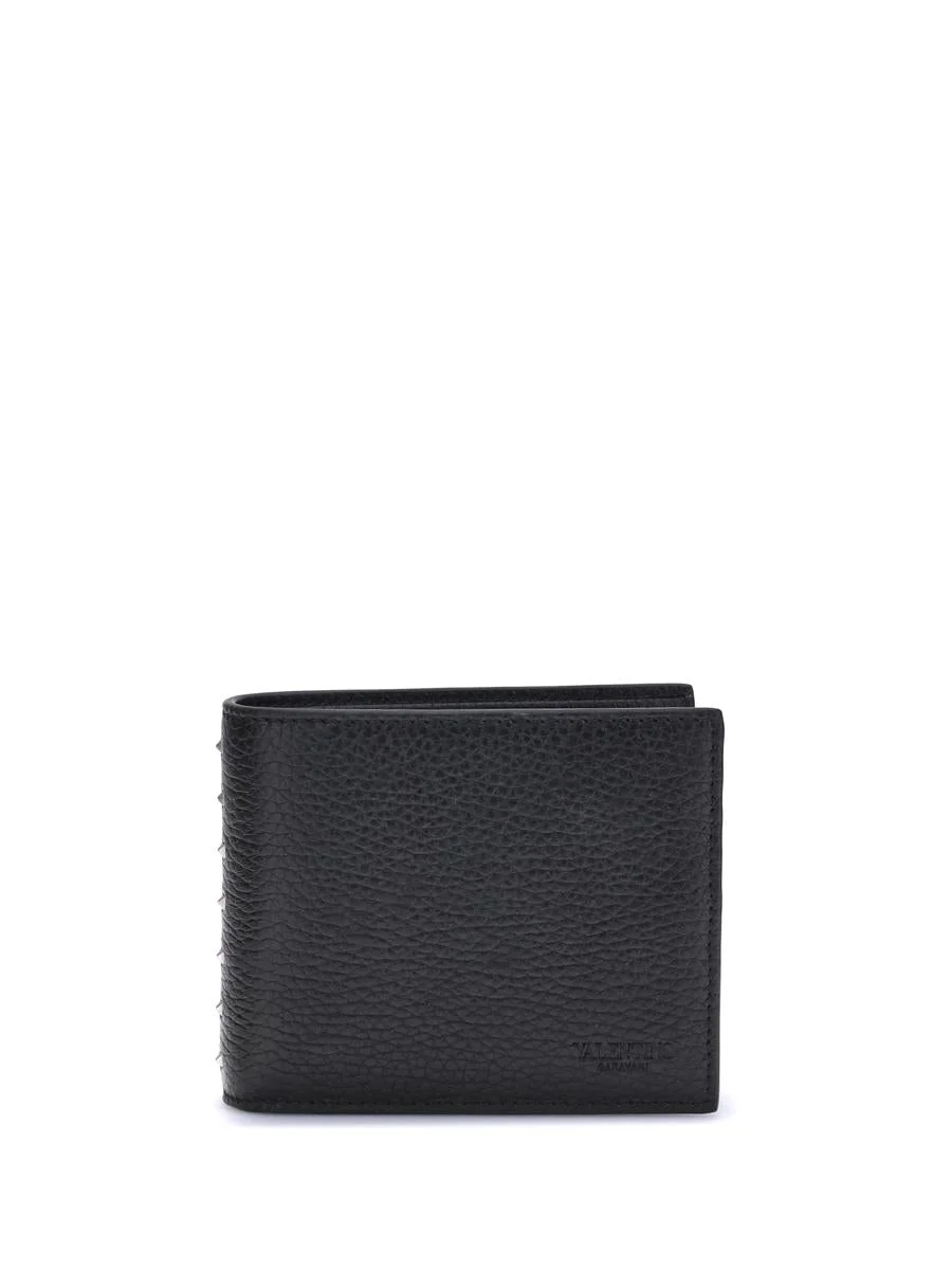 VALENTINO GARAVANI GRAINED LEATHER ROCKSTUD WALLET, ELEGANT AND FUNCTIONAL BIFOLD MODEL. INSIDE, IT FEATURES CARD SLOTS AND A DEDICATED BANKNOTE COMPARTMENT FOR PRACTICAL AND TIDY ORGANIZATION. THE DESIGN IS EMBELLISHED WITH THE ICONIC ROCKSTUD STUDS APPLIED ON THE OUTER SIDE PANEL, A DISTINCTIVE SYMBOL OF THE BRAND THAT GIVES A TOUCH OF GRIT AND CONTEMPORARY STYLE. UNI Height: 9 cm, Length: 11 cm Gender: Men Material: CALF LEATHER BOS TAURUS Color: Black Made in: Italy Product ID: 7Y2P0AQ3PDX_0NO *Import tax/duty will be calculated at checkout (If applicable)