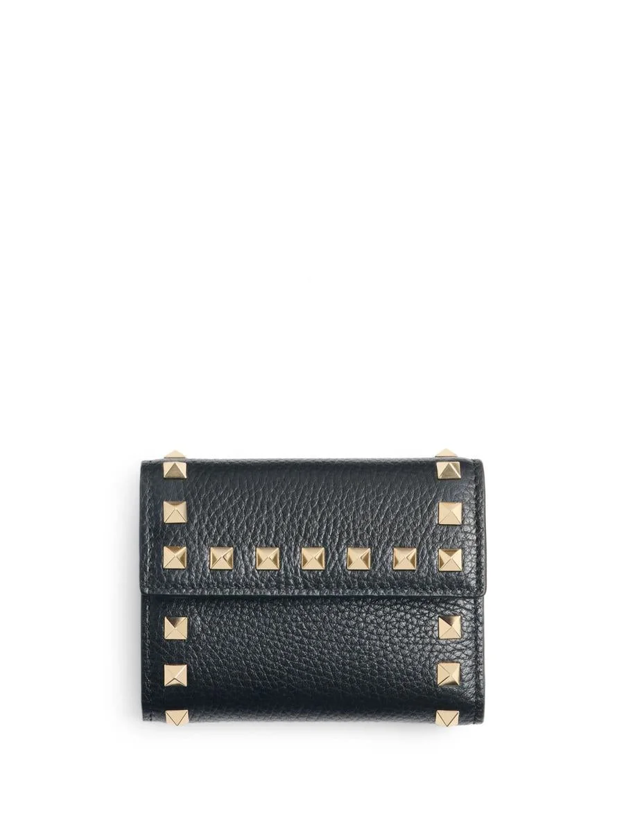ROCKSTUD TRIFOLD WALLET IN GRAINY CALFSKIN