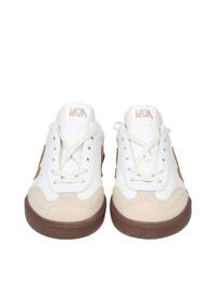 O.T. leather sneakers (organic traced leather) Suede details White/beige colour V Logo: Suede Insole: Amazon rubber (11%), bio-based E.V.A.* (sugar cane 42%), E.V.A. recycled (11%), organic cotton (12%) and others (14%) Sole: Amazon rubber (31%), silicon dioxide (31%), synthetic rubber (19%) and others (19%) Lining: Tech (100% recycled polyester) Label: Organic Cotton (100%) Laces: Organic cotton (100%) Gender: Women Color: WHT/TENT/BARK Made in: Imported Product ID: VO2003720D *Import tax/duty will be calculated at checkout (If applicable)