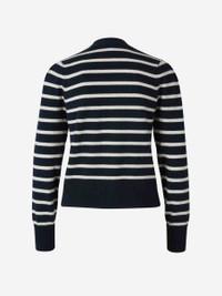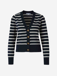 Cardigan by Veronica Beard Made of cashmere Nautical stripe pattern V neck Long sleeve Button fastening Adorned with bronze shield buttons Made in China Back length: 51 cm100% Pure Cashmere Gender: Women Material: 100% PURE CASHMERE Color: NAVY BLUE Made in: IMPORTED Product ID: 2411KA12902542411KA1290254_B0620Navy *Import tax/duty will be calculated at checkout (If applicable)