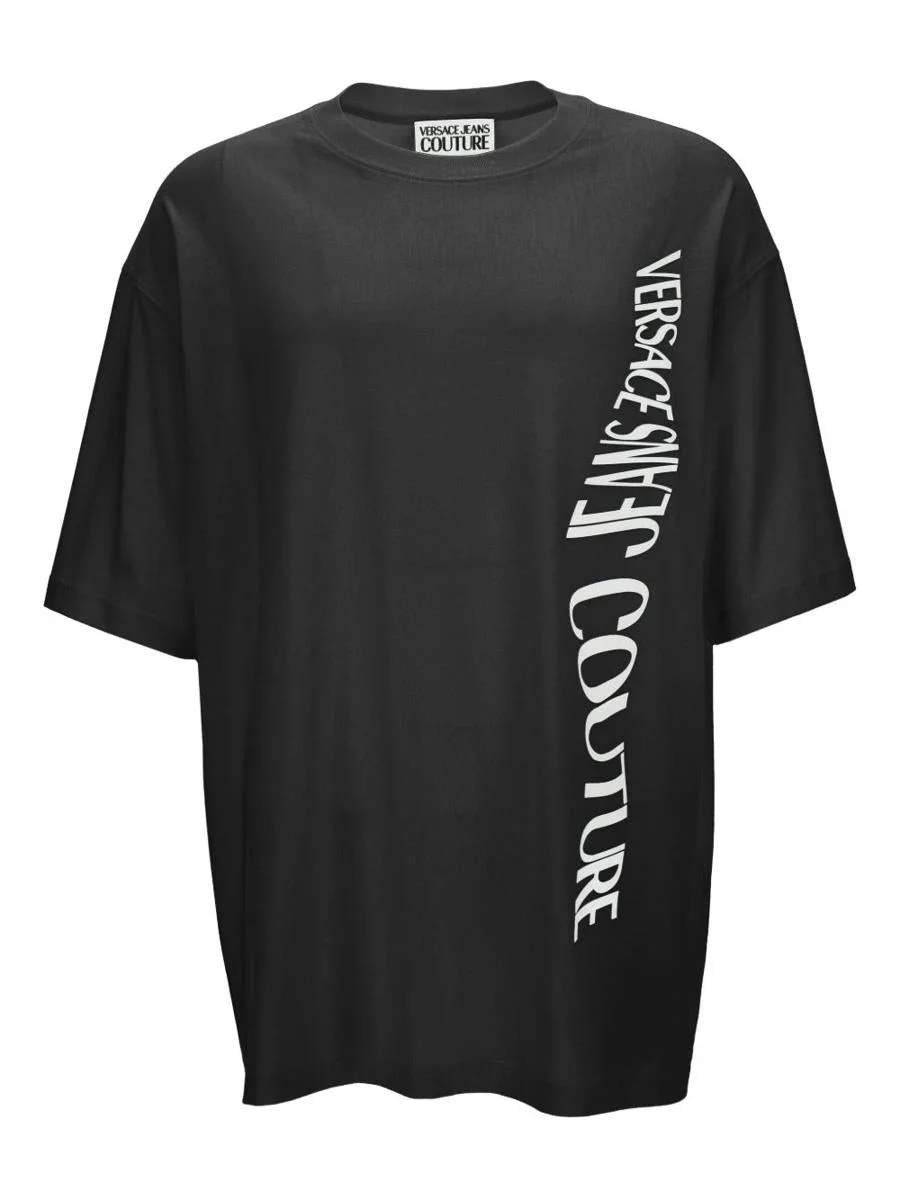 Versace Jeans Couture Logo T-shirt Features Black, short sleeves Vertical logo Crewneck Cotton Composition 100% cotton Gender: Men Color: Black Made in: Italy Product ID: 79GAHP04CJ01P899 *Import tax/duty will be calculated at checkout (If applicable)