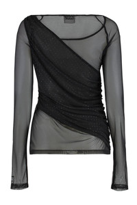 tulle top Gathered side 95% Polyamide, 5% Elastane, 82% Polyamide, 18% Elastane Gender: Women Material: POLYAMIDE Color: Black Made in: Italy Product ID: 78HAH600J0192_899 *Import tax/duty will be calculated at checkout (If applicable)
