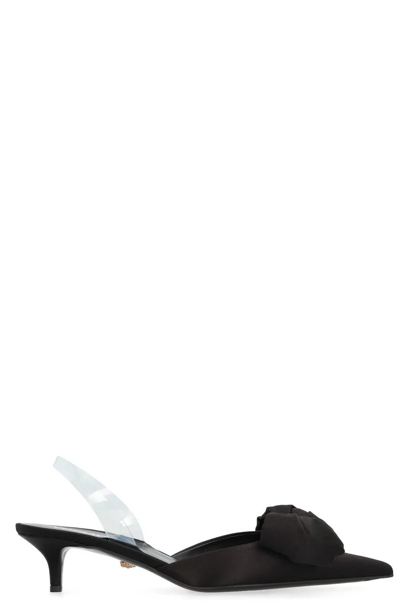 Alia Satin slingback pumps Pointy toe Decorative bow on the front Kitten heels 100% Lamb, 100% Polyurethane, 72% Viscose, 28% Silk, 100% Goatskin Gender: Women Material: LAMB Color: Black Made in: IT Product ID: 10154241A08415_1B00V *Import tax/duty will be calculated at checkout (If applicable)