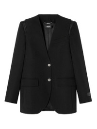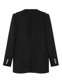 Single-breasted two-button placket V-neck, collarless; long sleeves, quilted leather inserts at shoulders, three-button cuffs, Versace jacquard tailoring label at sleeve Flap welt pockets at waist, chest pocket Center back slit Medusa buttons Lined Black color 100% Virgin Wool Made in Italy Gender: Women Material: 100% WOOL Color: Black Made in: Italy Product ID: 10216411A159741B000 *Import tax/duty will be calculated at checkout (If applicable)