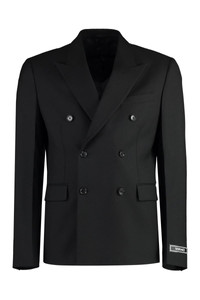 Double-breasted wool blazer Lapel collar Two front flap pockets and chest pocket Back slit hem 100% Virgin wool Gender: MEN Material: VIRGIN WOOL Color: BLACK Made in: IT Product ID: 10124921A07978_1B000 *Import tax/duty will be calculated at checkout (If applicable)