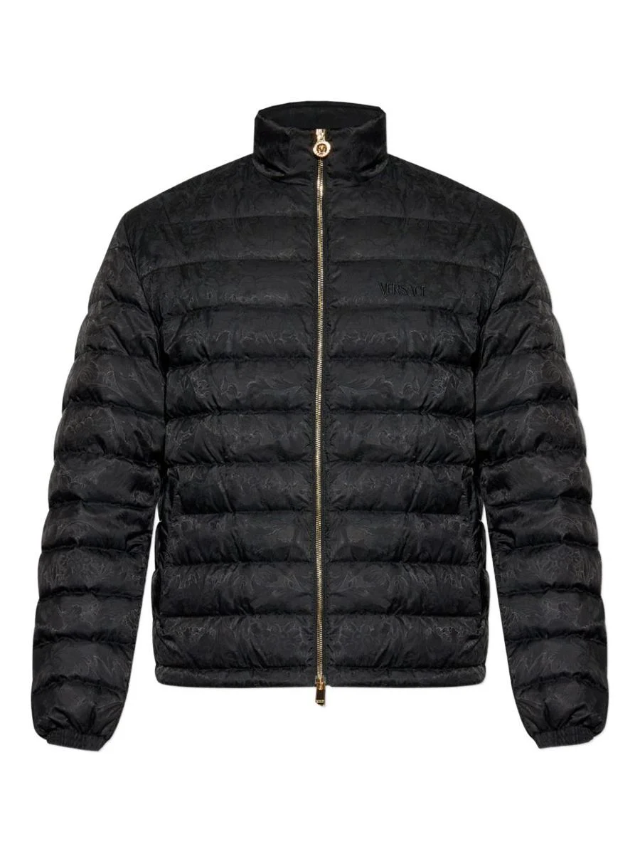 Two-way zip closure; Medusa Biggie zip puller High collar; Long sleeves Tone-on-tone logo embroidery on the back All-over Baroque jacquard pattern Side pockets with snap buttons; Interior pocket with hidden zip Elasticized hem Regular fit Color: Black 100% Polyamide; Filling: 80% duck and goose down, 20% duck and goose feathers Made in Italy Gender: Men Material: 100% POLYAMIDE Color: Black Made in: Italy Product ID: 10207581A097851B000 *Import tax/duty will be calculated at checkout (If applicable)
