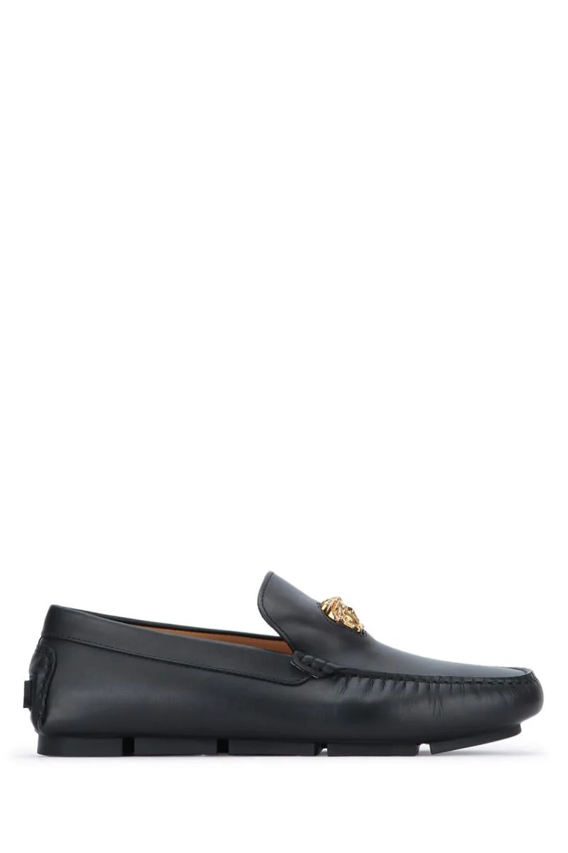 Black leather loafer. Medusa detail applied on the front. Logo embossed back patch. Gender: MEN Material: 100% LEATHER Color: Black Made in: IT Product ID: 10037011A00693 1B00V *Import tax/duty will be calculated at checkout (If applicable)
