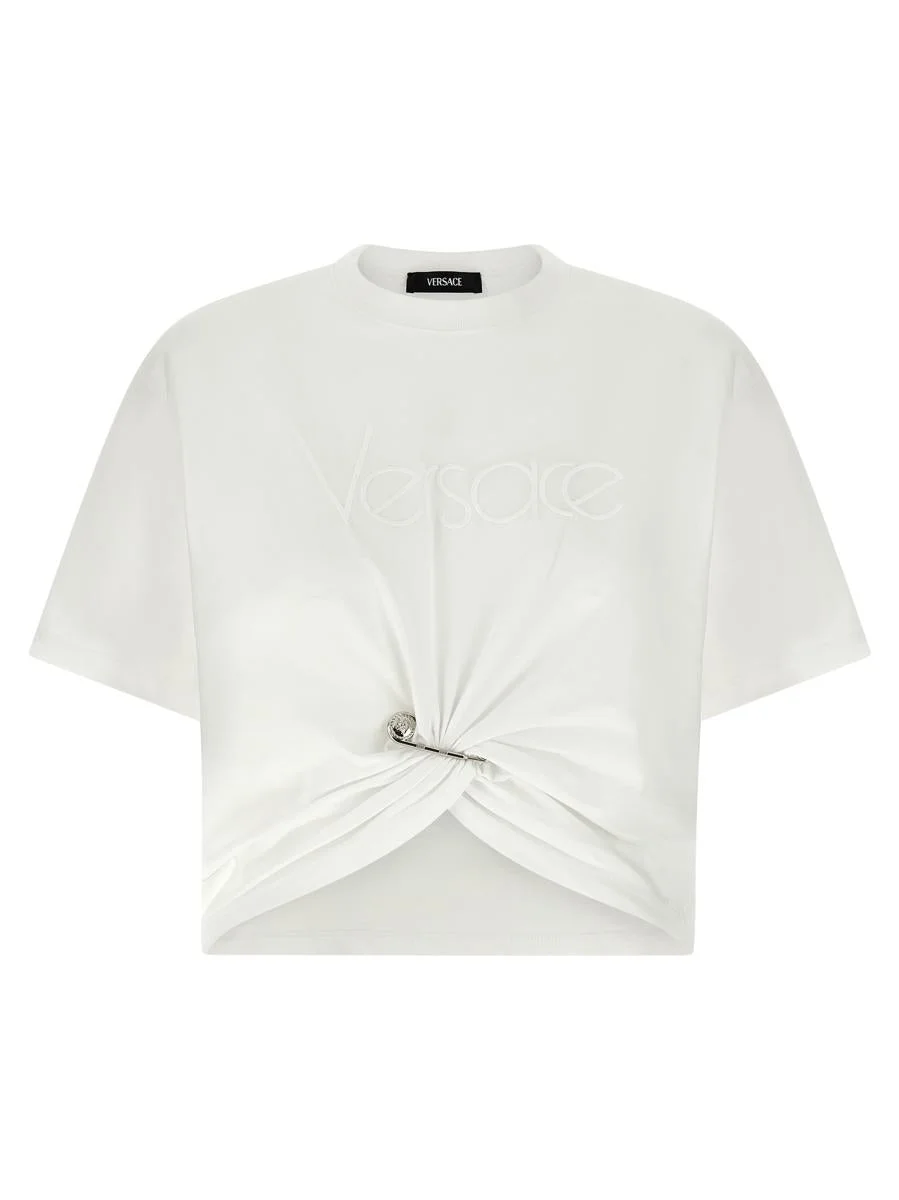 Cotton T-shirt with tone-on-tone embroidered logo on the front, crew neck, 'Safety pin' curling and short sleeves Gender: Women Material: 100% COTTON Color: WHITE Made in: PT Product ID: 10188981A136101W000 *Import tax/duty will be calculated at checkout (If applicable)