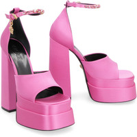 Medusa Aevitas satin sandals Rhinestones at front Adjustable ankle strap with buckle Logo detail pendant Block heel Double Platform: 3 cm 28% Silk, 100% Calf, 72% Viscose, 100% Lamb Gender: Women Material: CALF Color: PINK Made in: IT Product ID: 1007717DRA67_1PK4V *Import tax/duty will be calculated at checkout (If applicable)