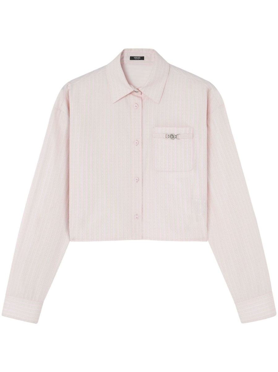 Versace Pinstripe Chain Cropped Shirt