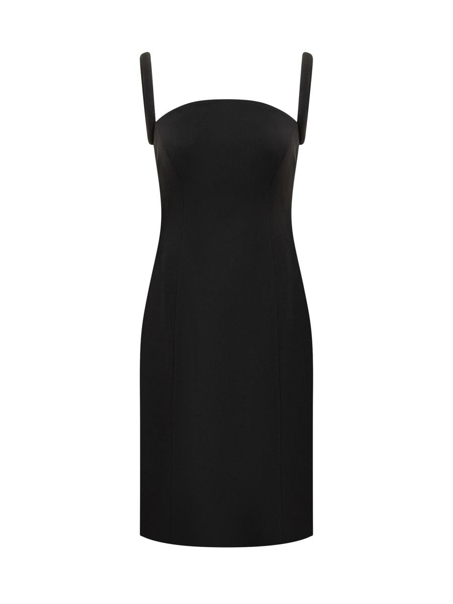Black sheath midi dress in satin envers crepe. Sleeveless and rolled shoulder straps. Neckline return. Hourglass waist. Back zipper closure. Gender: Women Material: OUTSIDE:70% ACETATE 30% VISCOSELINING:75% ACETATE 25% VISCOSE Color: Black Made in: IT Product ID: 10124461A00540 1B000 *Import tax/duty will be calculated at checkout (If applicable)